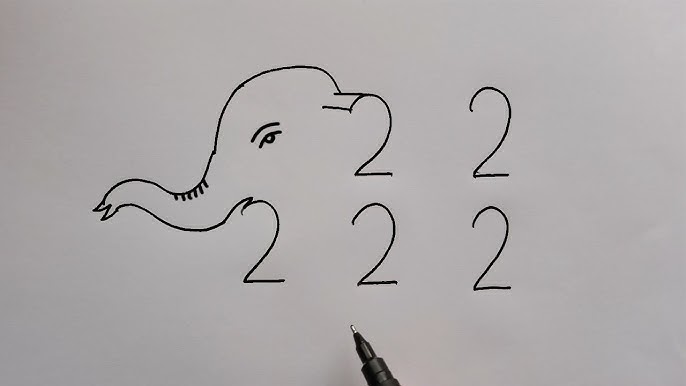 How To Draw Elephant From Number 5555 Easy Elephant Drawing For Beginners Youtube